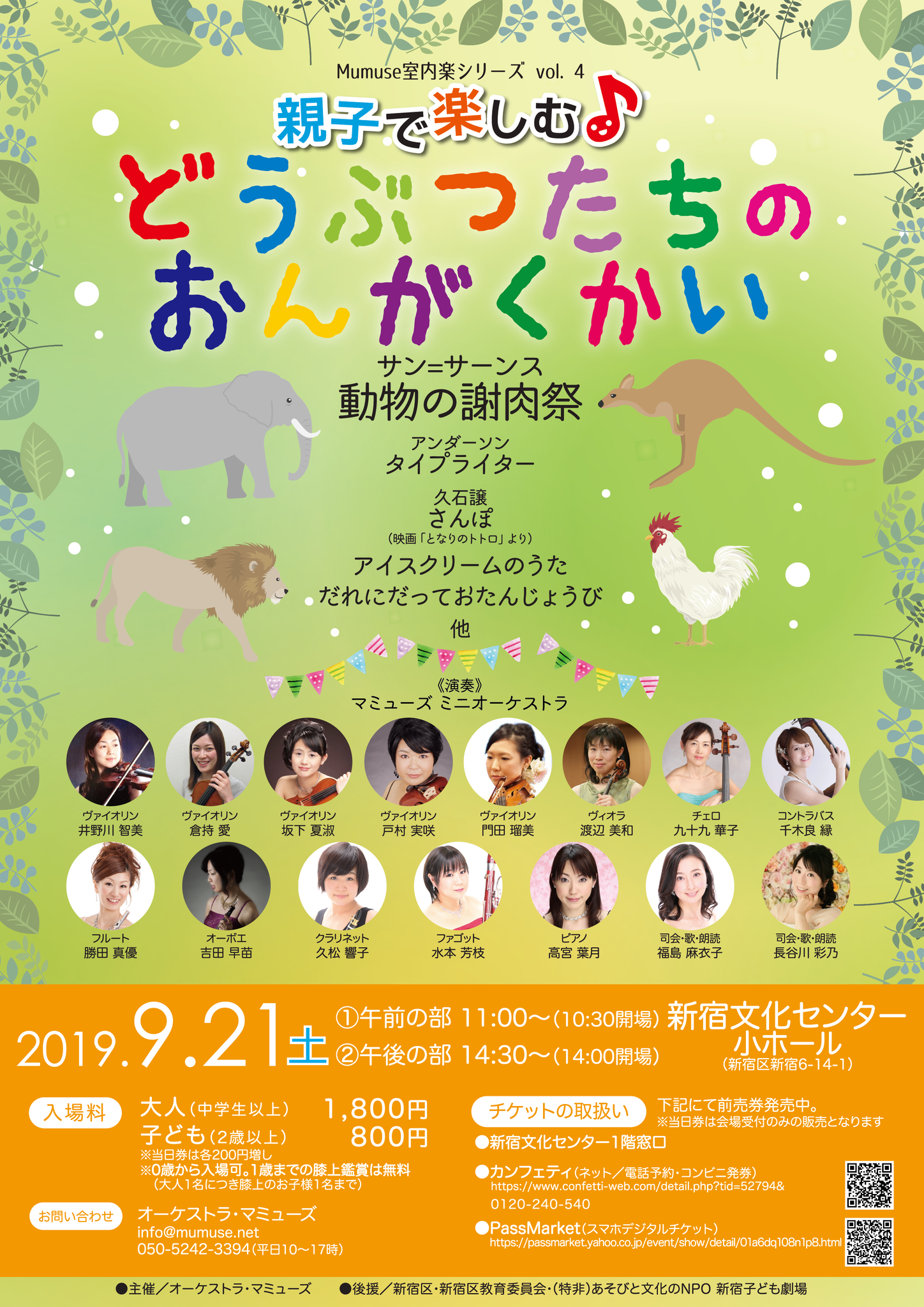 Mumuse室内楽vol 4 親子で楽しむ どうぶつたちのおんがくかい 音大出身者によるマザーズオーケストラ Mumuse マミューズ